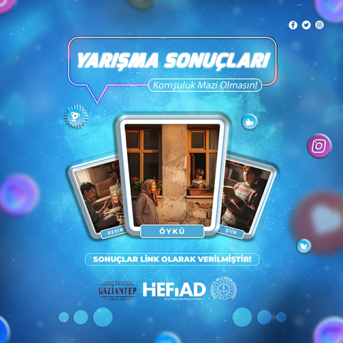 Gaziantep Valiliği koordinesinde, Gaziantep İl Milli Eğitim Müdürlüğü ve HEFİAD işbirliğiyle hazırlanan "Komşuluk Mazi Olmasın" konulu resim, şiir ve öykü yarışmasına ilimiz merkez ilçelerinden toplamda 18 resim, 25 şiir, 45 öykü katılmıştır.
